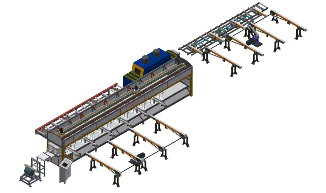 A cremalheira de escolha automática equipada com o sistema de controlo automático do computador transporta automaticamente os perfis calorosos e psiquiatra-envolvidos à cremalheira da tradução do armazenamento através do rolo de feltro do poder e da correia transportadora de feltro.