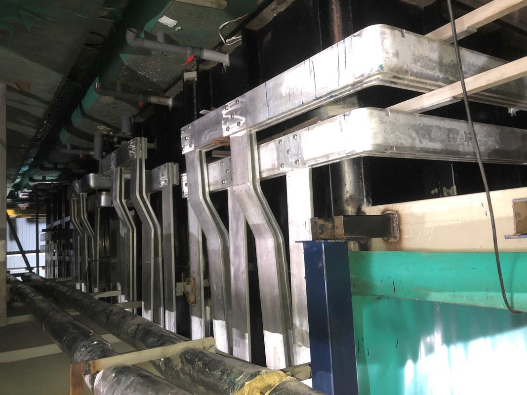 2) Tanque de cloro:100 m2/tanque × 70 A/m2÷0,9 = 7777 A/tanque